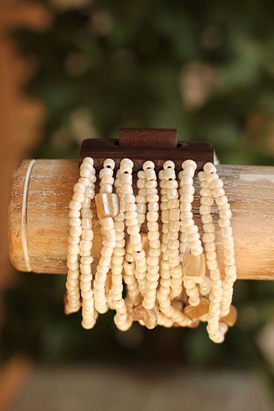Tento náramek byl vyroben v rodinné dílně paní Nyoman v Indonésii. Paní Nyoman pracovala dlouhá léta jako pouliční prodavačka. Před 7 lety si pronajala svůj první kamenný obchod a dnes je úspěšnou podnikatelkou. Výrobou bižuterie zaměstnává 10 žen ze své vesnice.