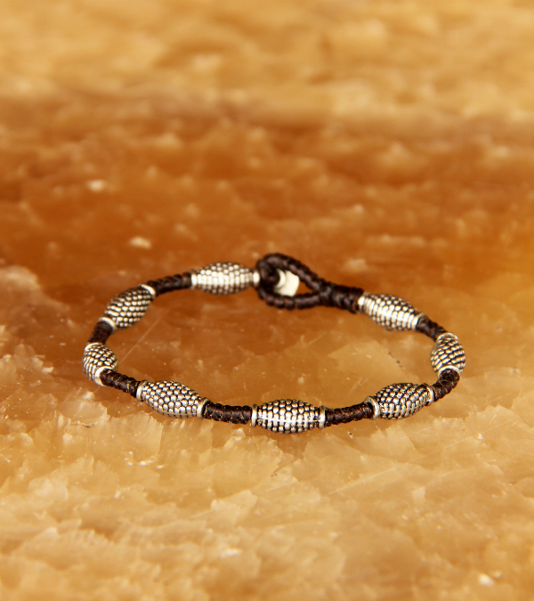 Tento náramek byl vyroben v rodinné dílně paní Nyoman v Indonésii. Paní Nyoman pracovala dlouhá léta jako pouliční prodavačka. Před 7 lety si pronajala svůj první kamenný obchod a dnes je úspěšnou podnikatelkou. Výrobou bižuterie zaměstnává 10 žen ze své vesnice.
