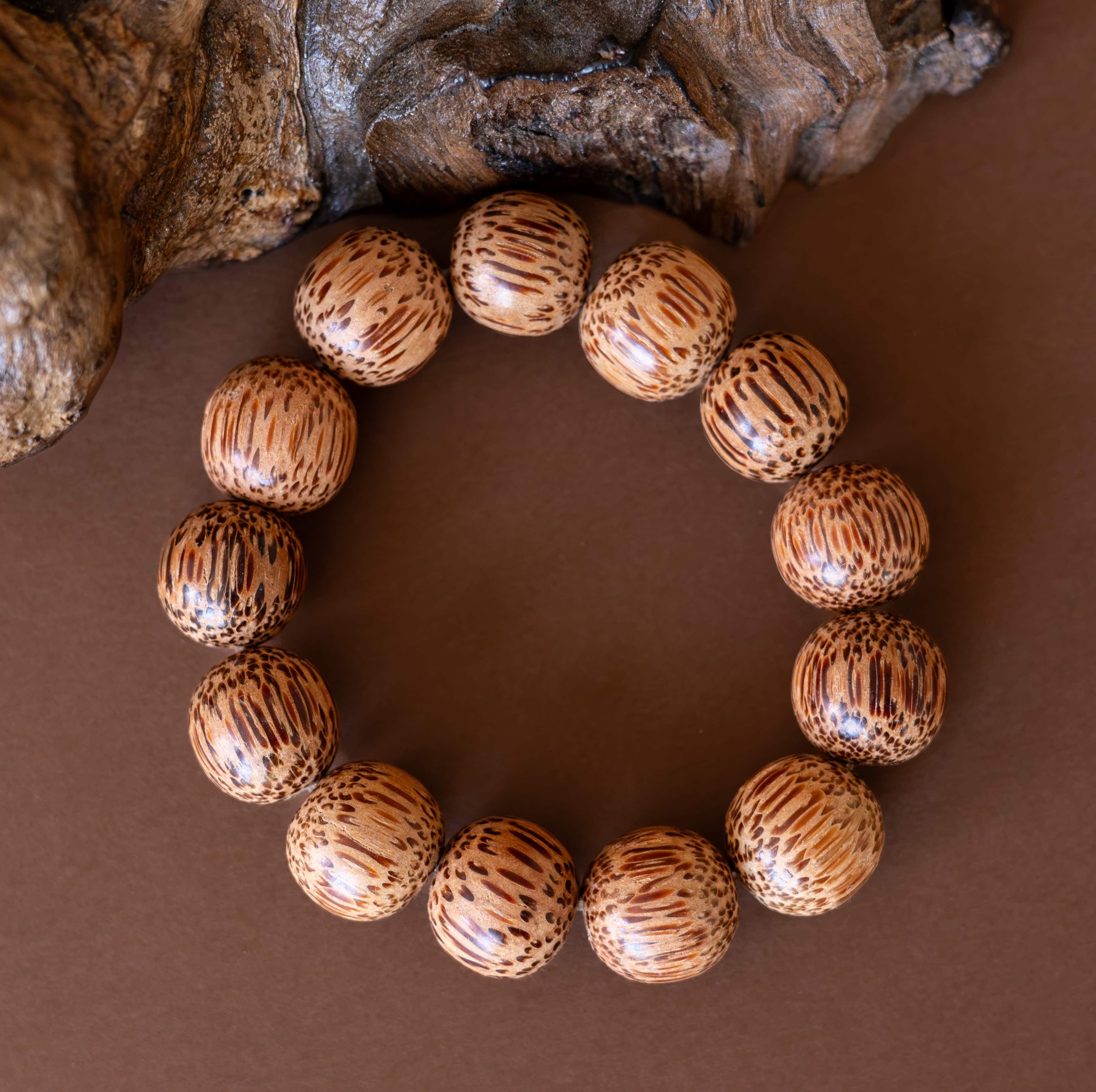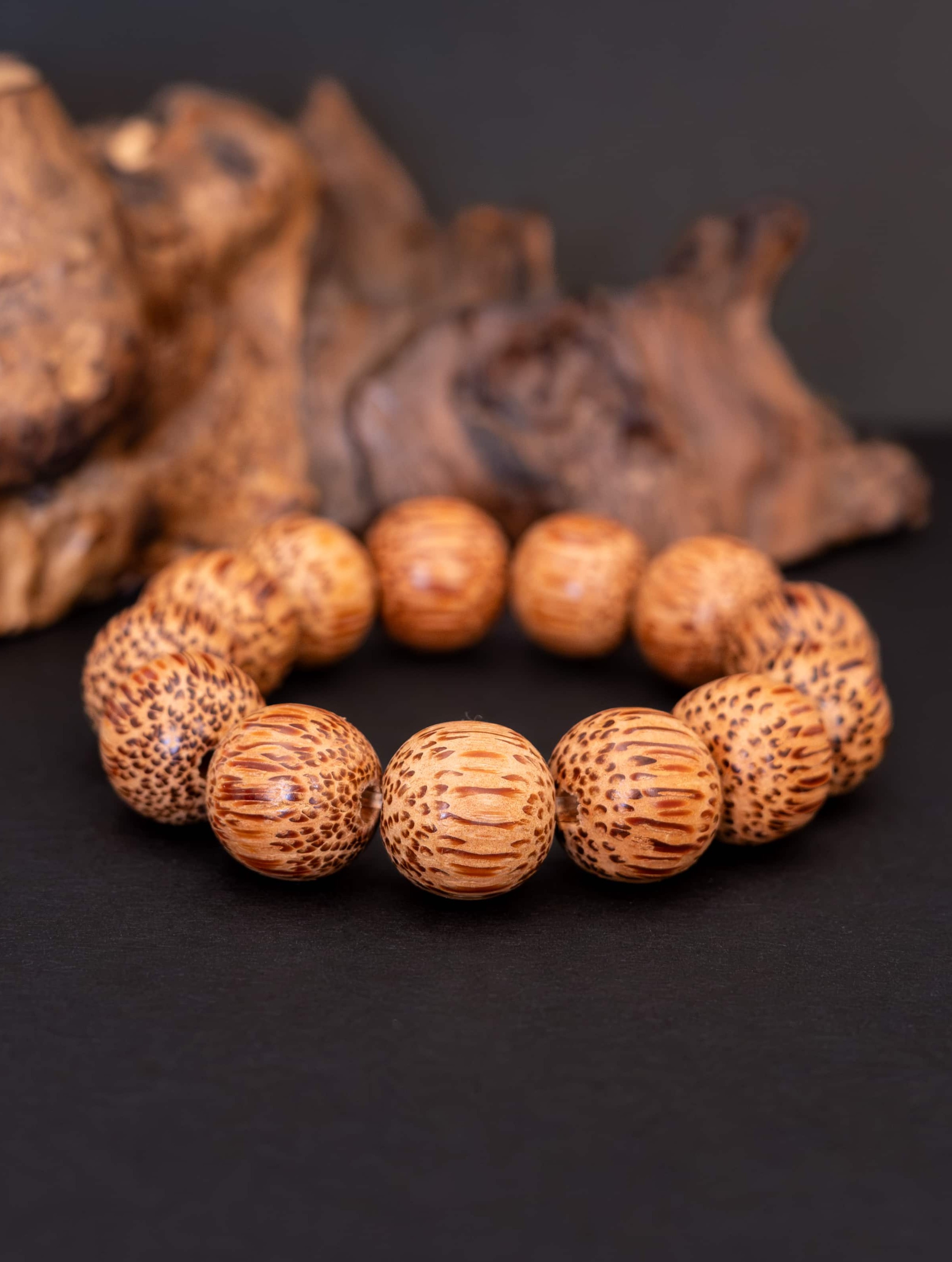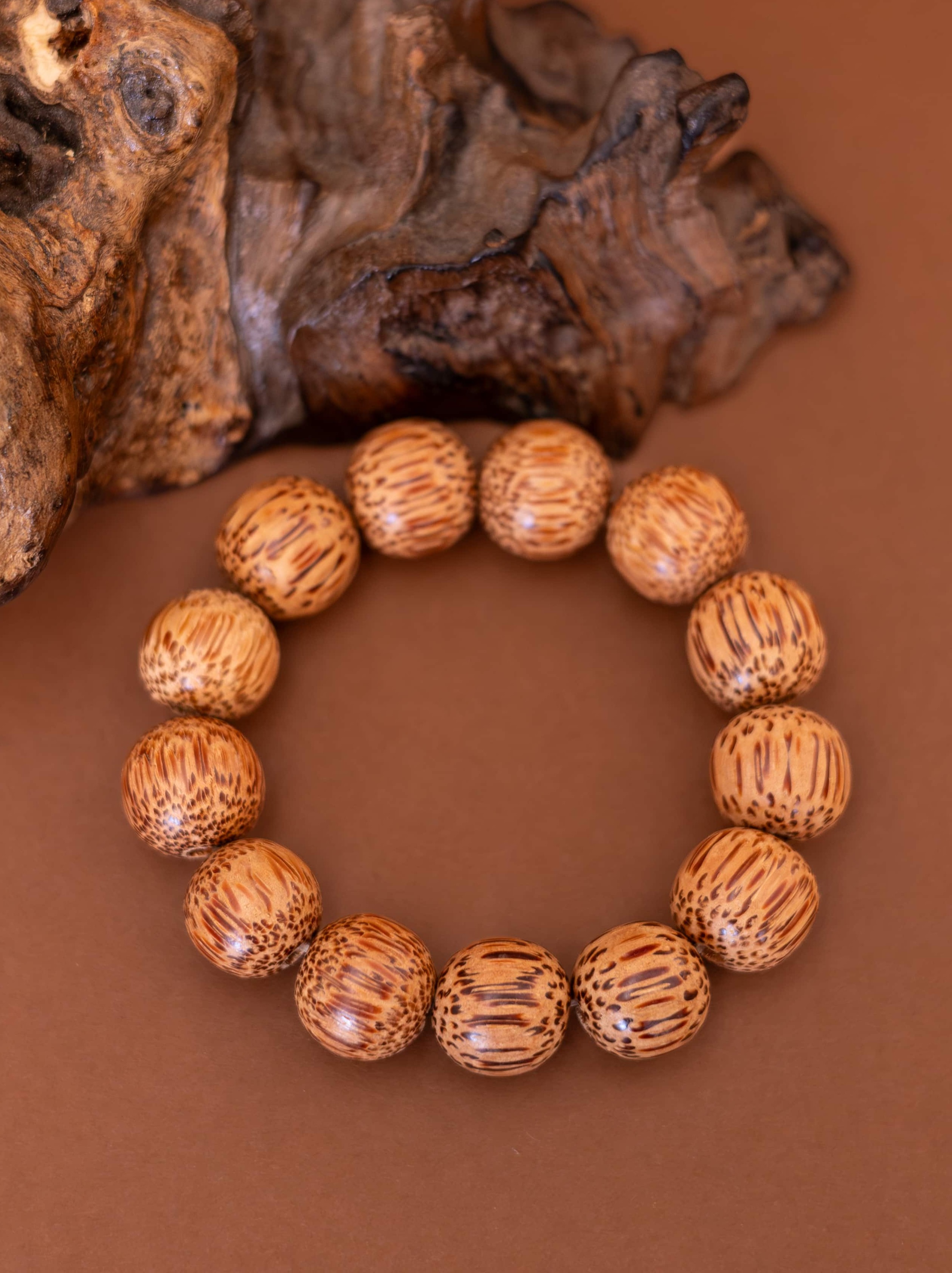 Náramek Palma je oslavou jednoduché krásy přírody. Vytvořený z větších korálků ze dřeva kokosové palmy, nese v sobě teplou, uzemňující energii a vůni dálek. Každý korálek v sobě ukrývá sluneční sílu tropů a jemnou sílu přírodních cyklů.