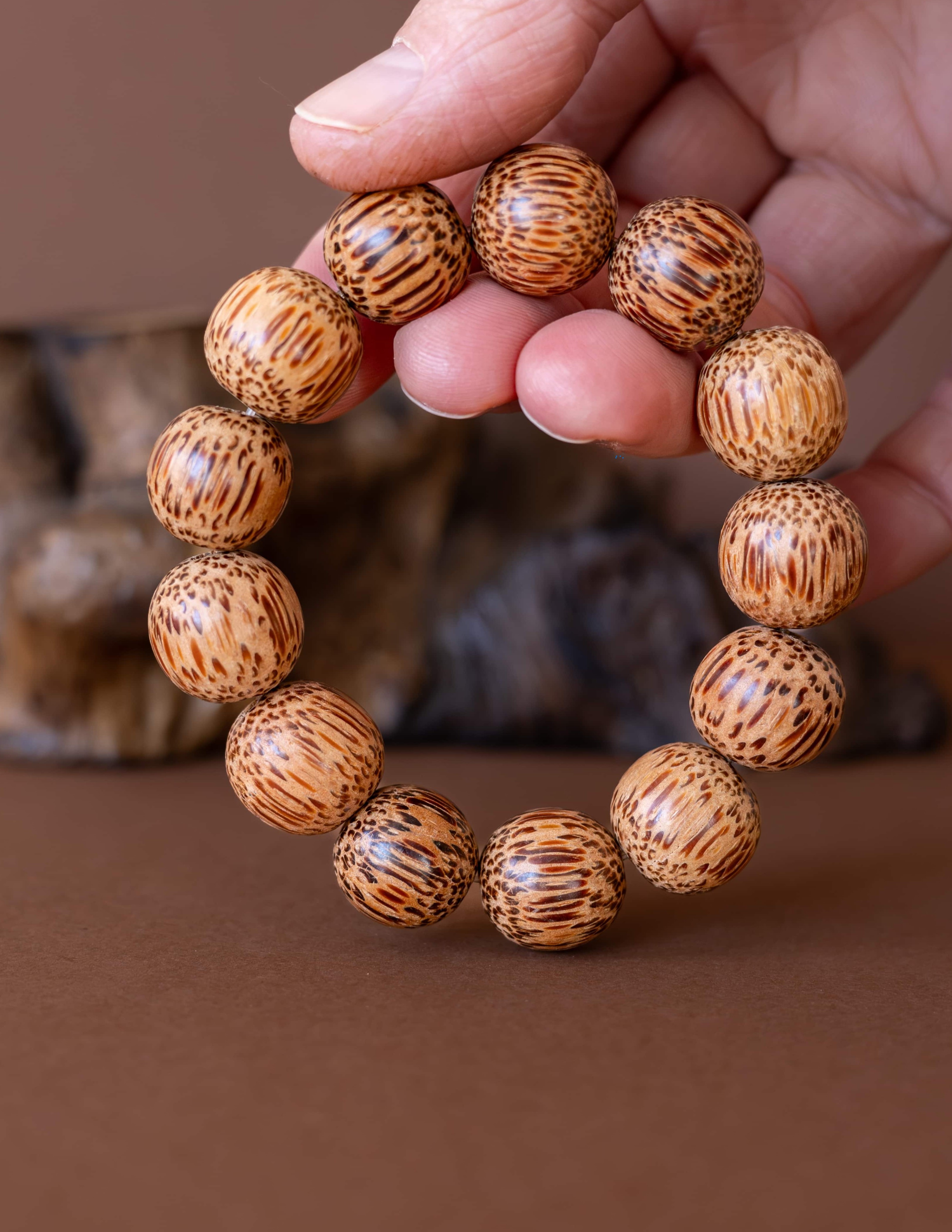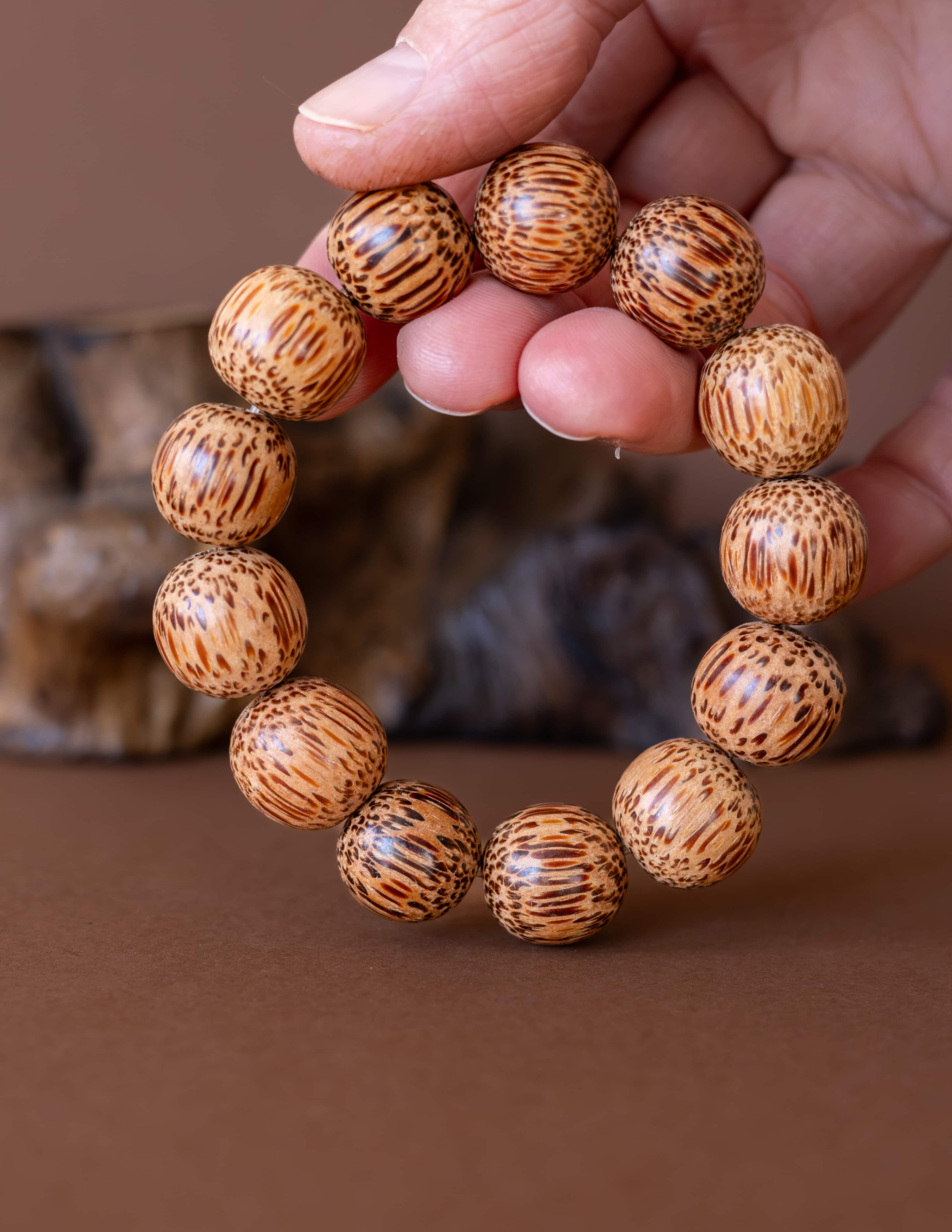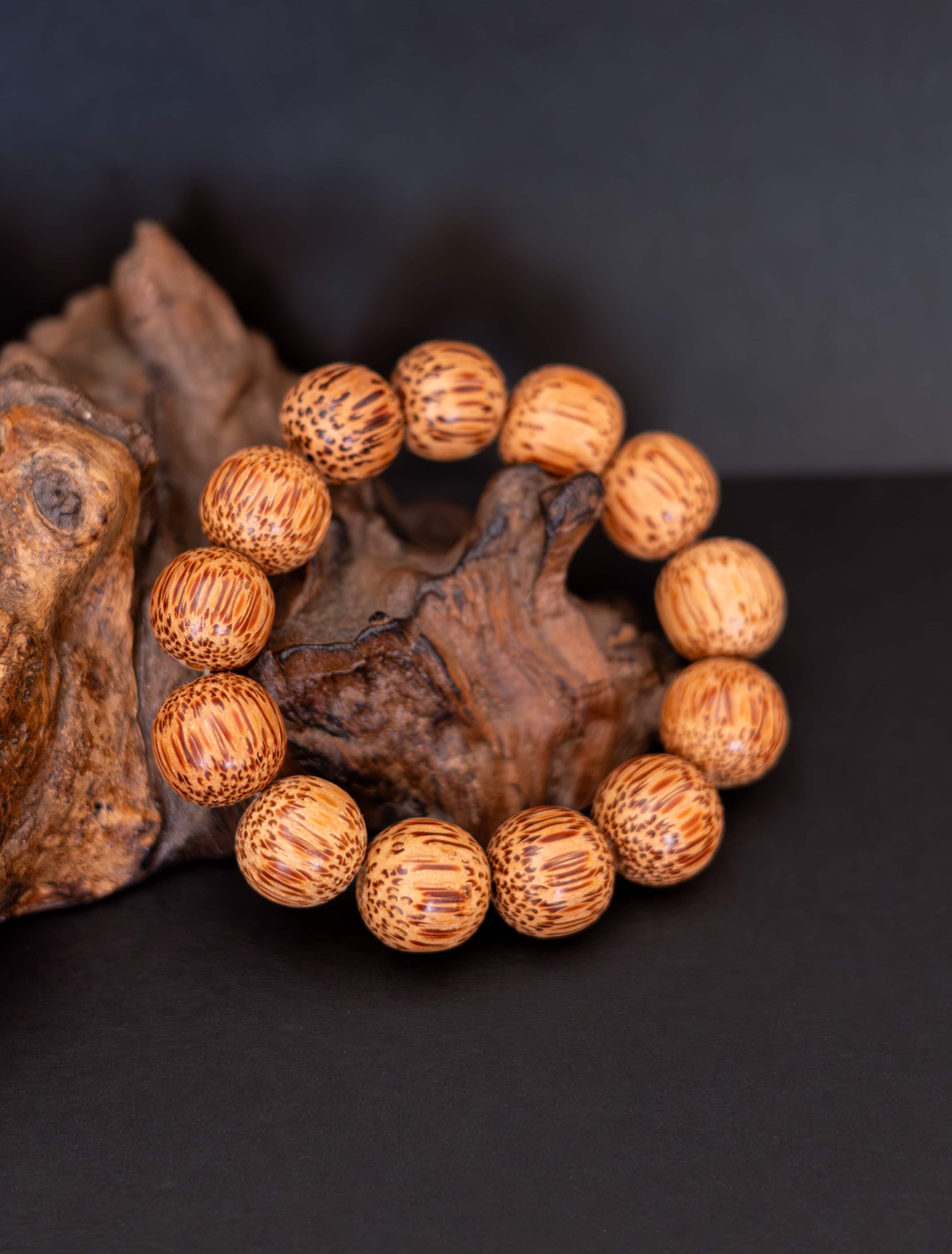 Náramek Palma je oslavou jednoduché krásy přírody. Vytvořený z větších korálků ze dřeva kokosové palmy, nese v sobě teplou, uzemňující energii a vůni dálek. Každý korálek v sobě ukrývá sluneční sílu tropů a jemnou sílu přírodních cyklů.