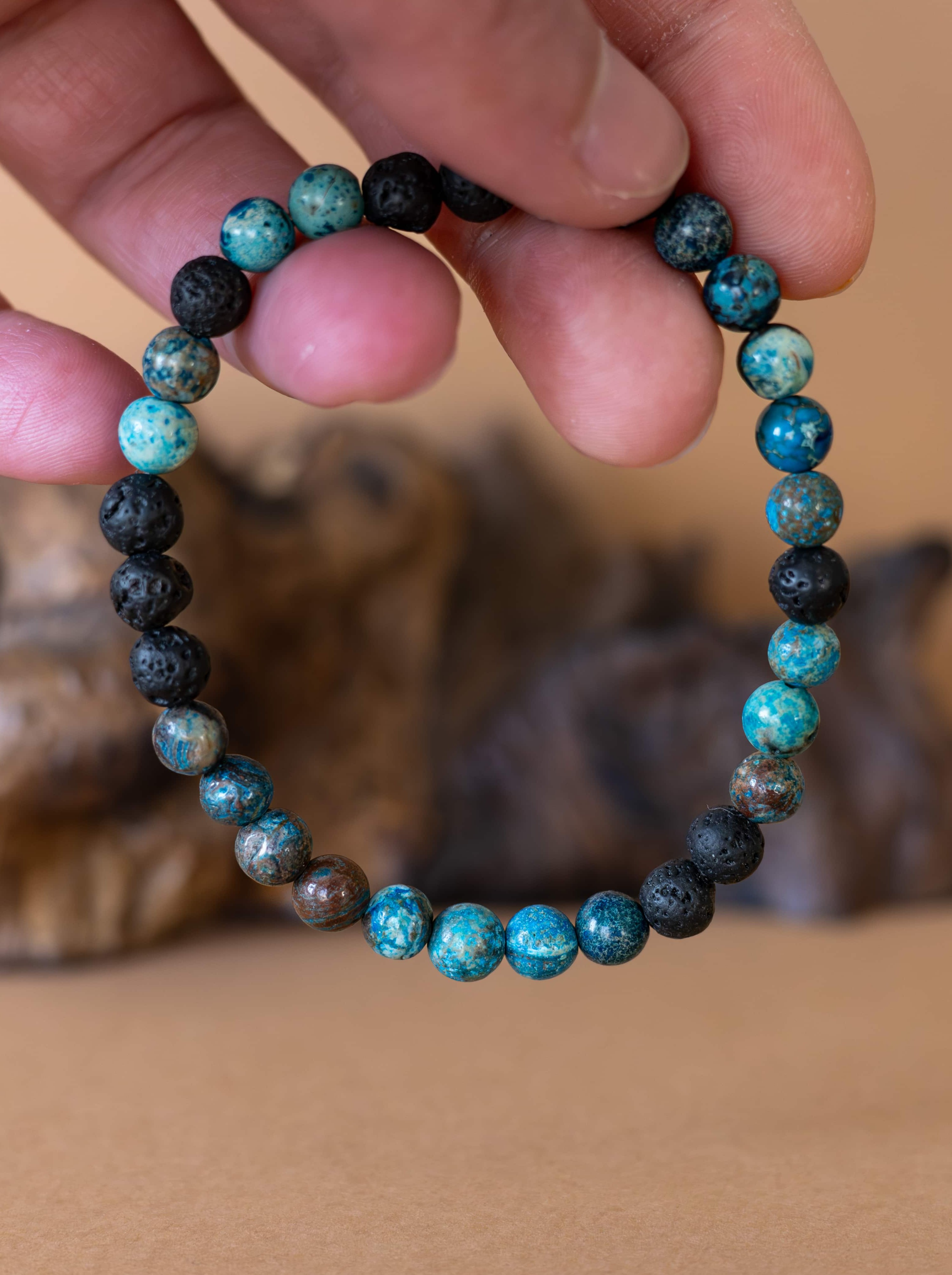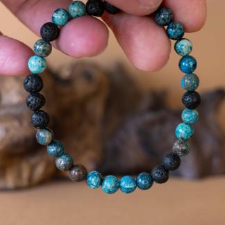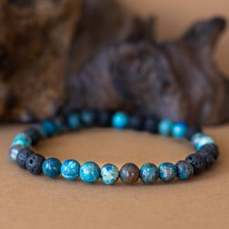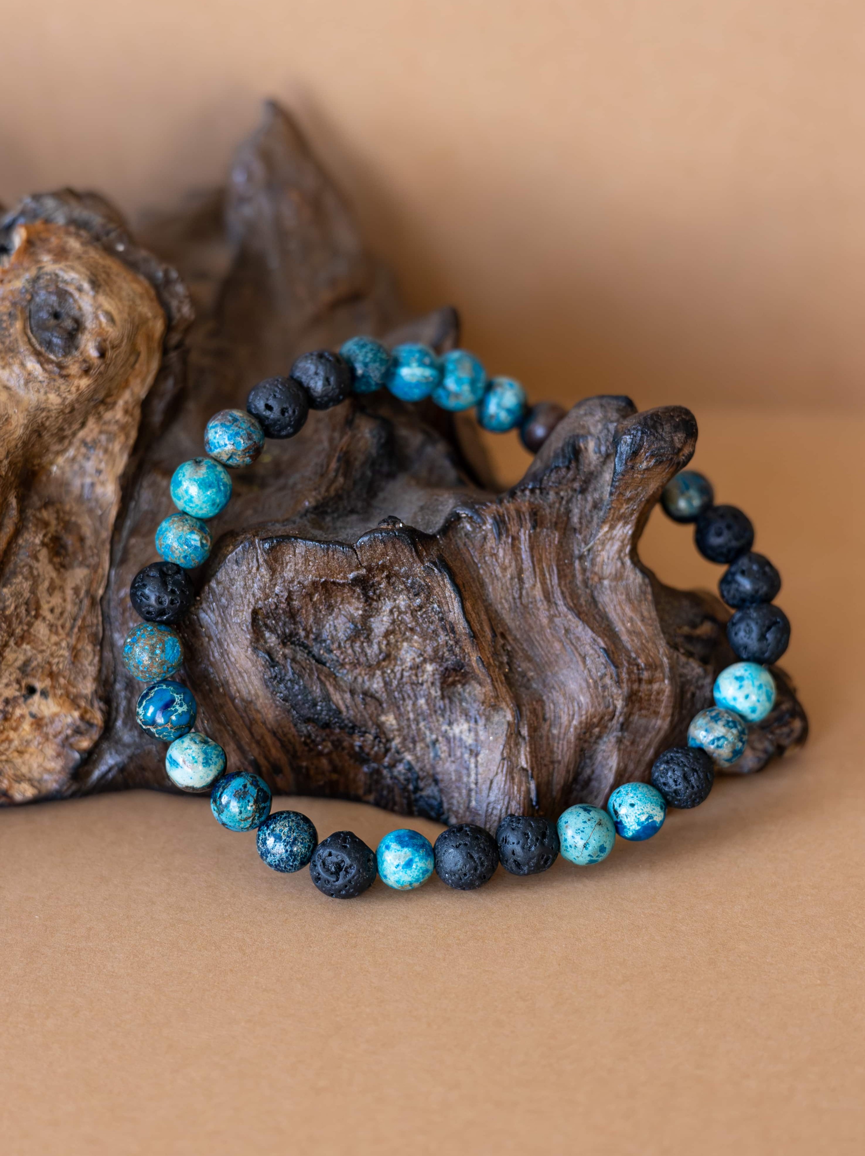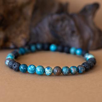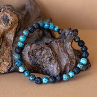 Náramek Dual propojuje dvě zdánlivě opačné energie – živelnost ohně a klid vody. Červená láva symbolizuje sílu, odvahu a životní energii, zatímco modrý achát přináší vnitřní klid, stabilitu a rozvahu. Společně vytvářejí harmonický celek, který tě podpoří v hledání rovnováhy mezi dynamikou a klidem.