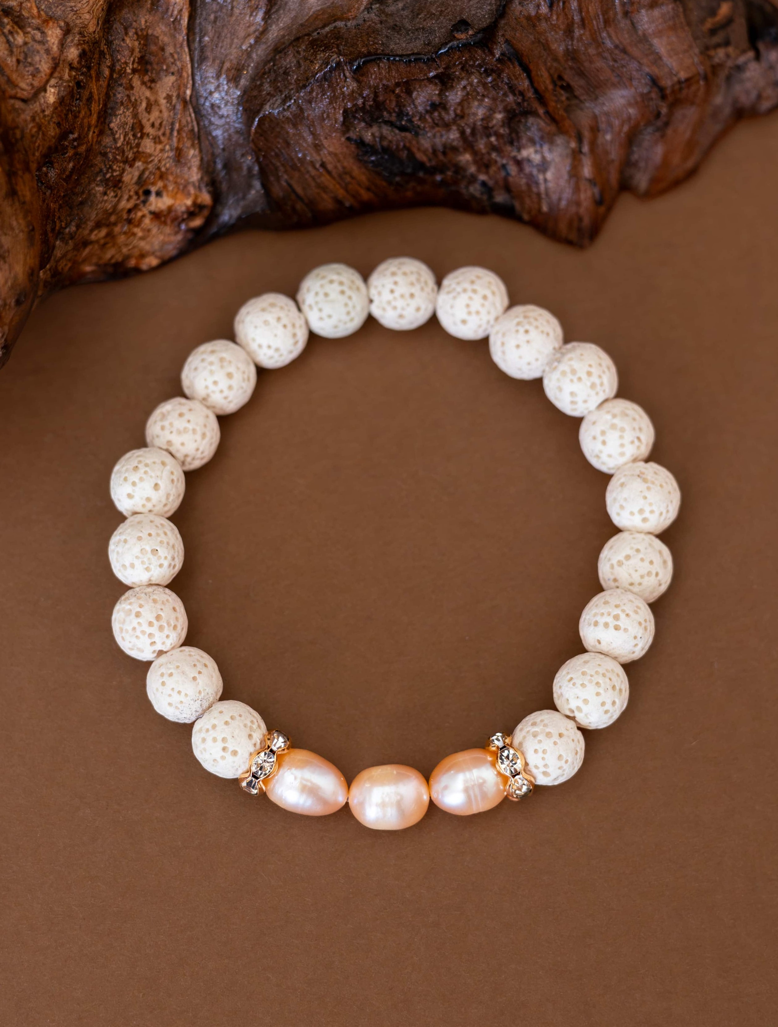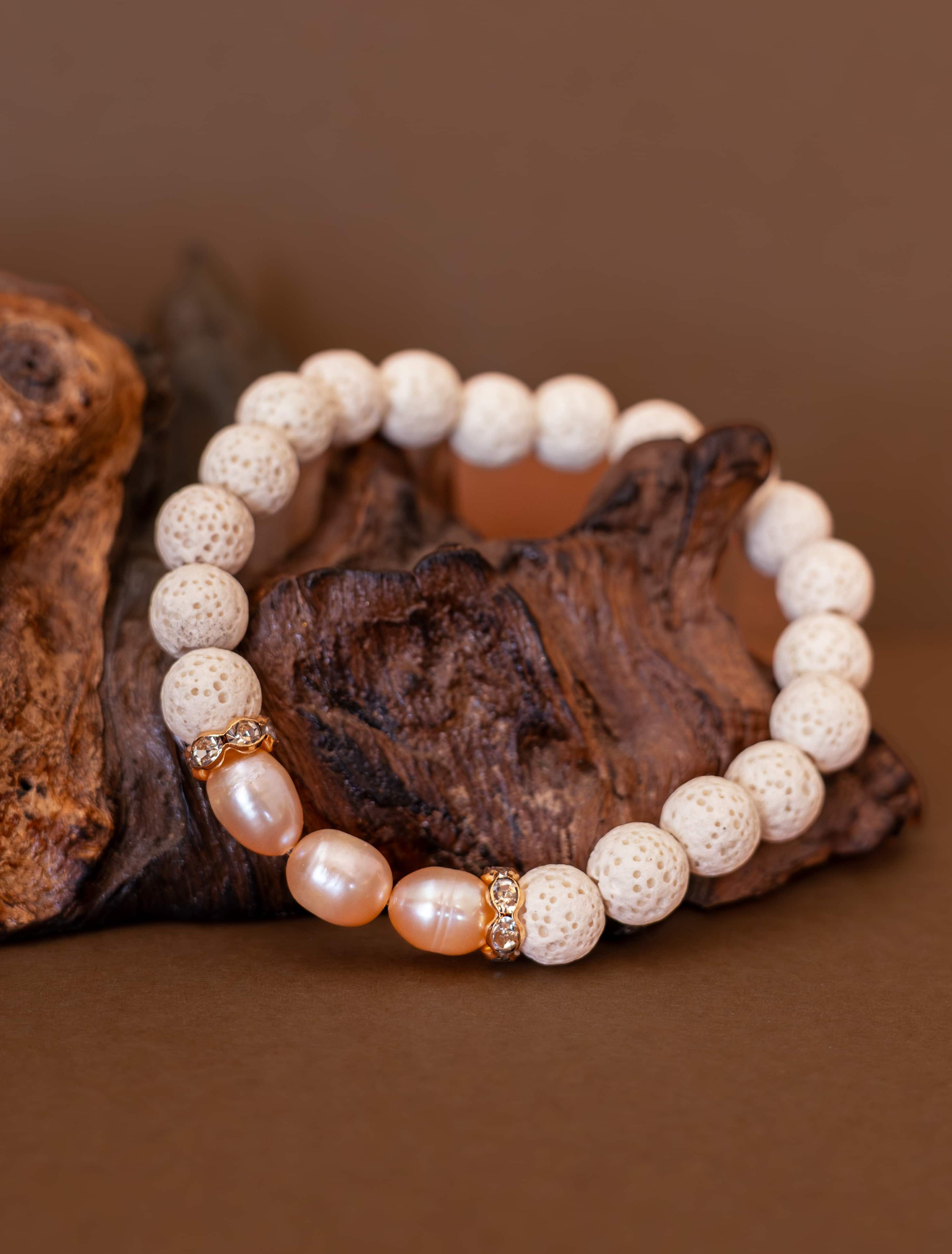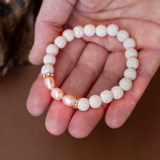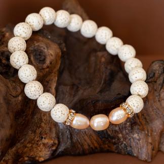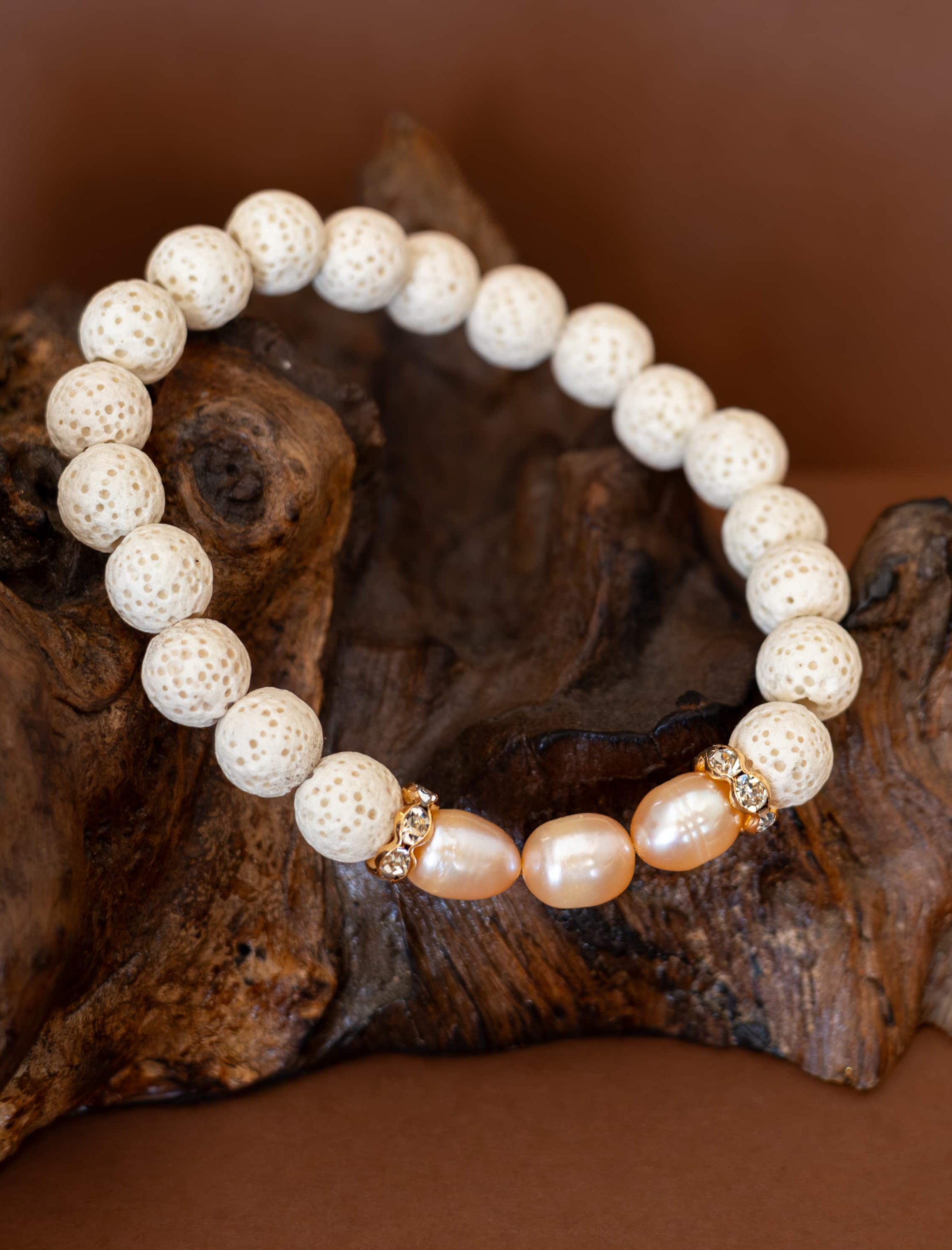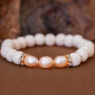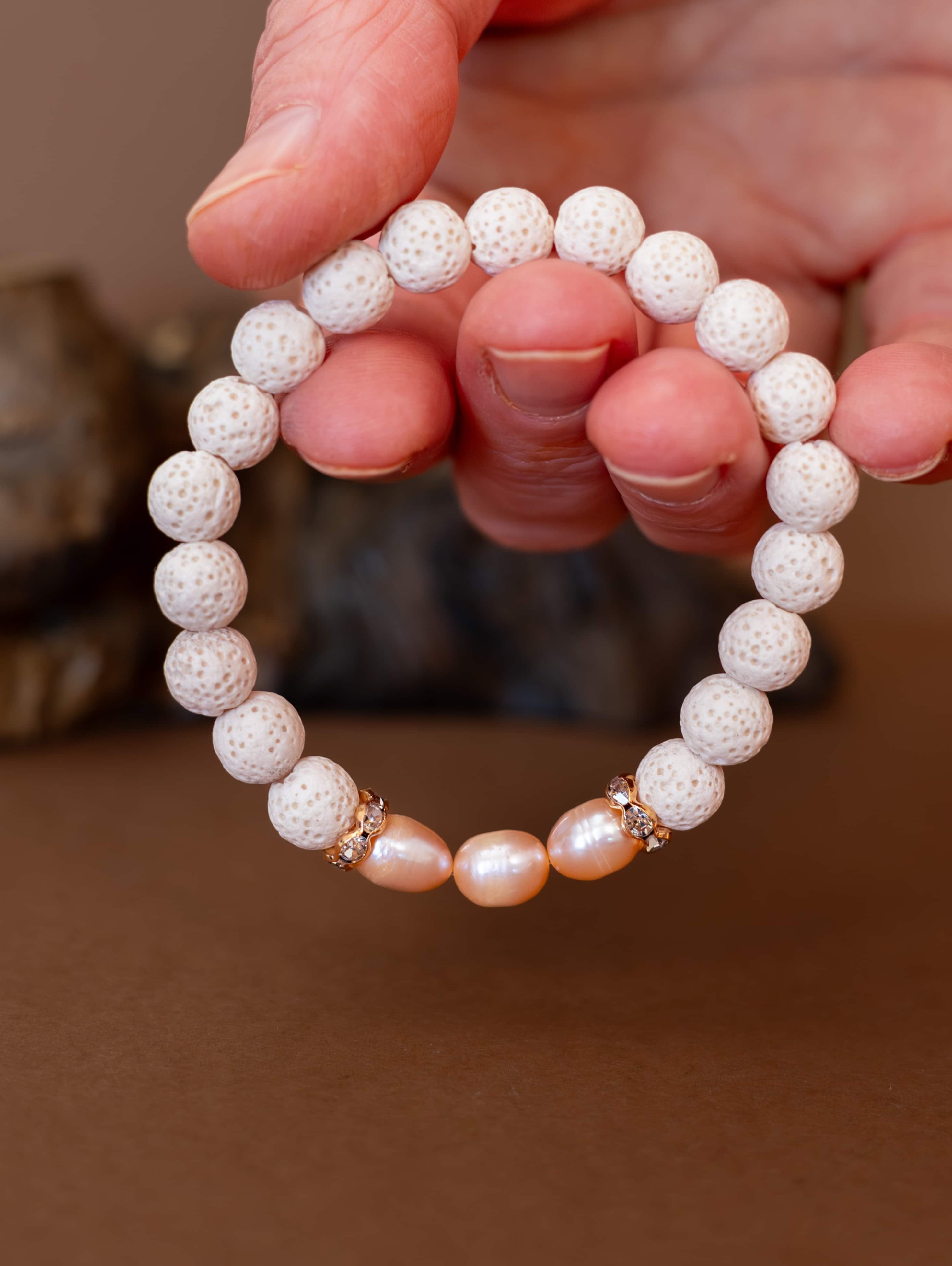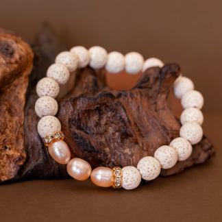 Náramek Bali v sobě nese atmosféru teplého slunce, bílé pláže a vnitřního klidu. Tři jemné perličky uprostřed symbolizují čistotu, ženskost a rovnováhu. Bílá láva přináší zemitost a přirozenost, zatímco třpytivé mezikomponenty dodávají šperku jiskru a jemný dotek elegance.