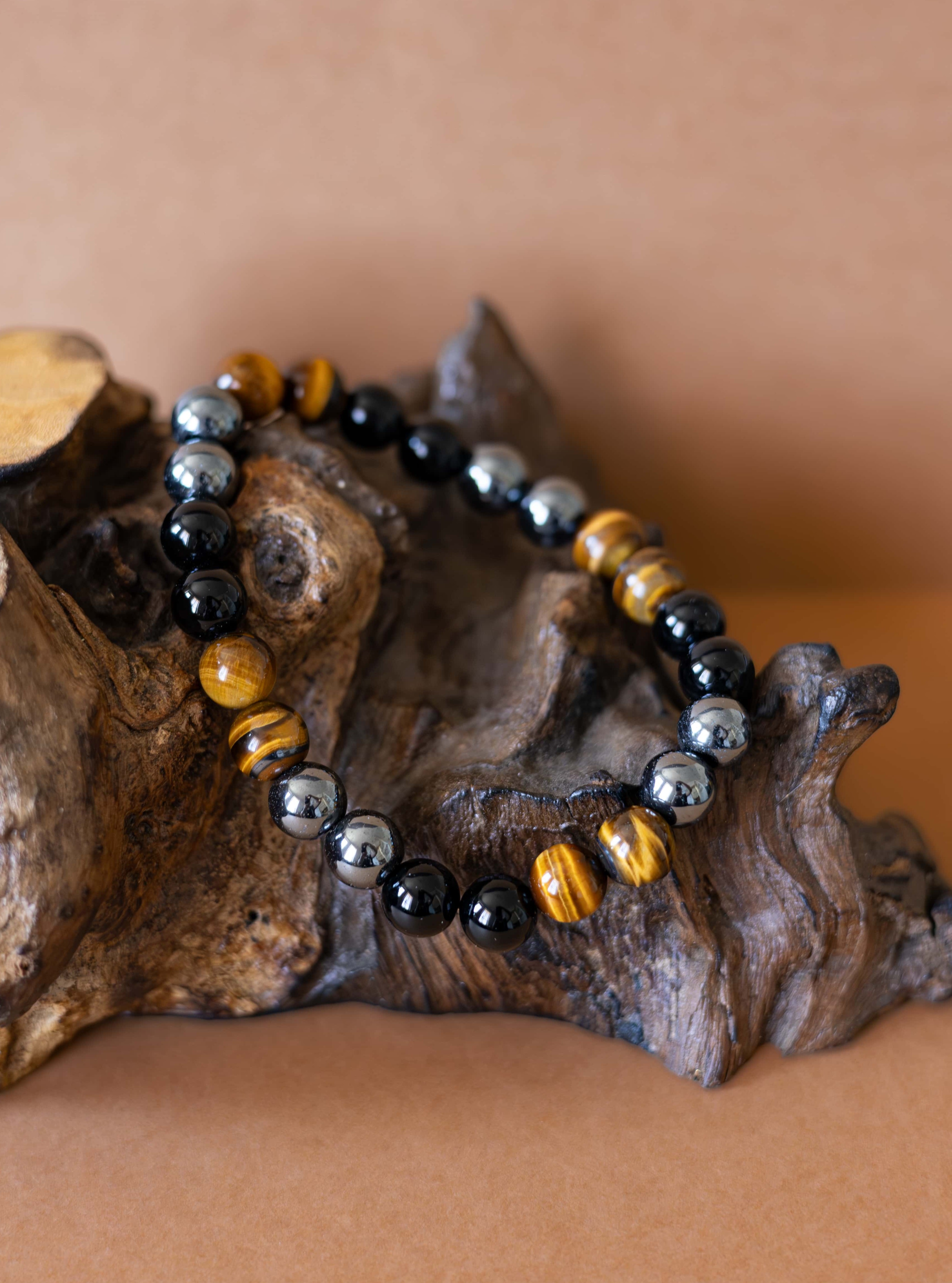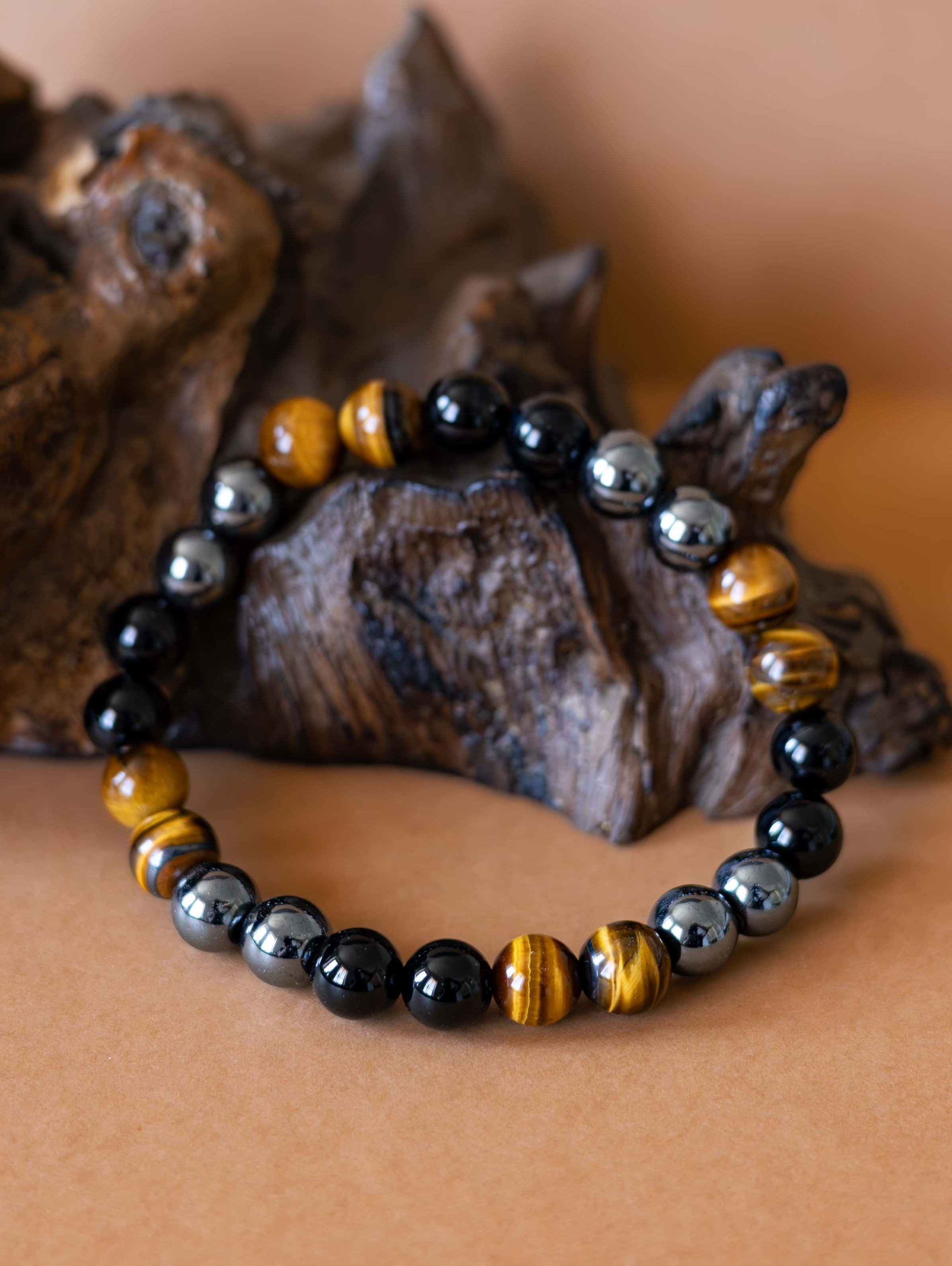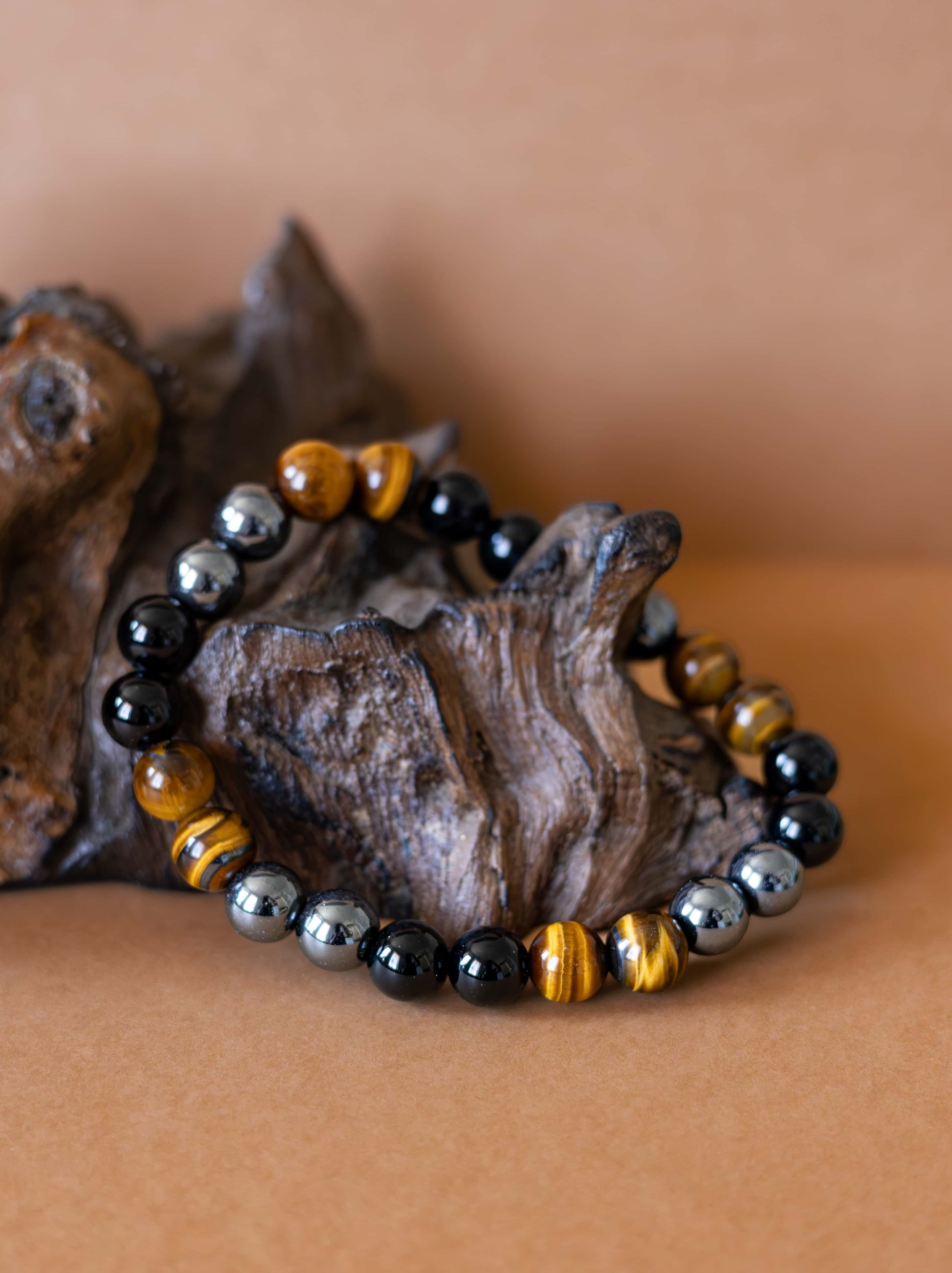Náramek Sigma je navržen jako tichý symbol pevnosti, odhodlání a vnitřní rovnováhy. Spojení tří silných kamenů – černého onyxu, tygřího oka a hematitu – vytváří šperk, který podporuje soustředění, odvahu a stabilitu v každodenních výzvách.