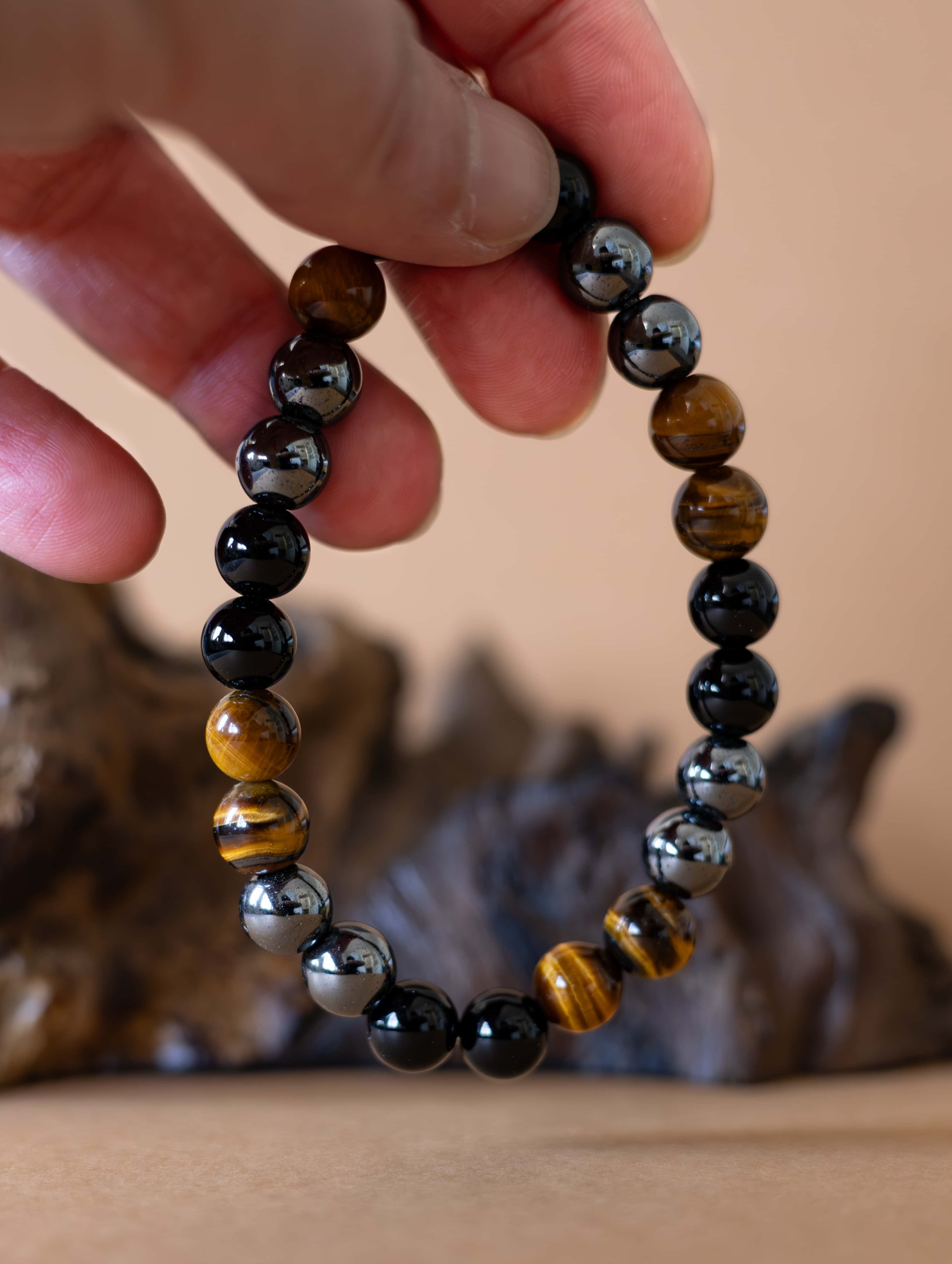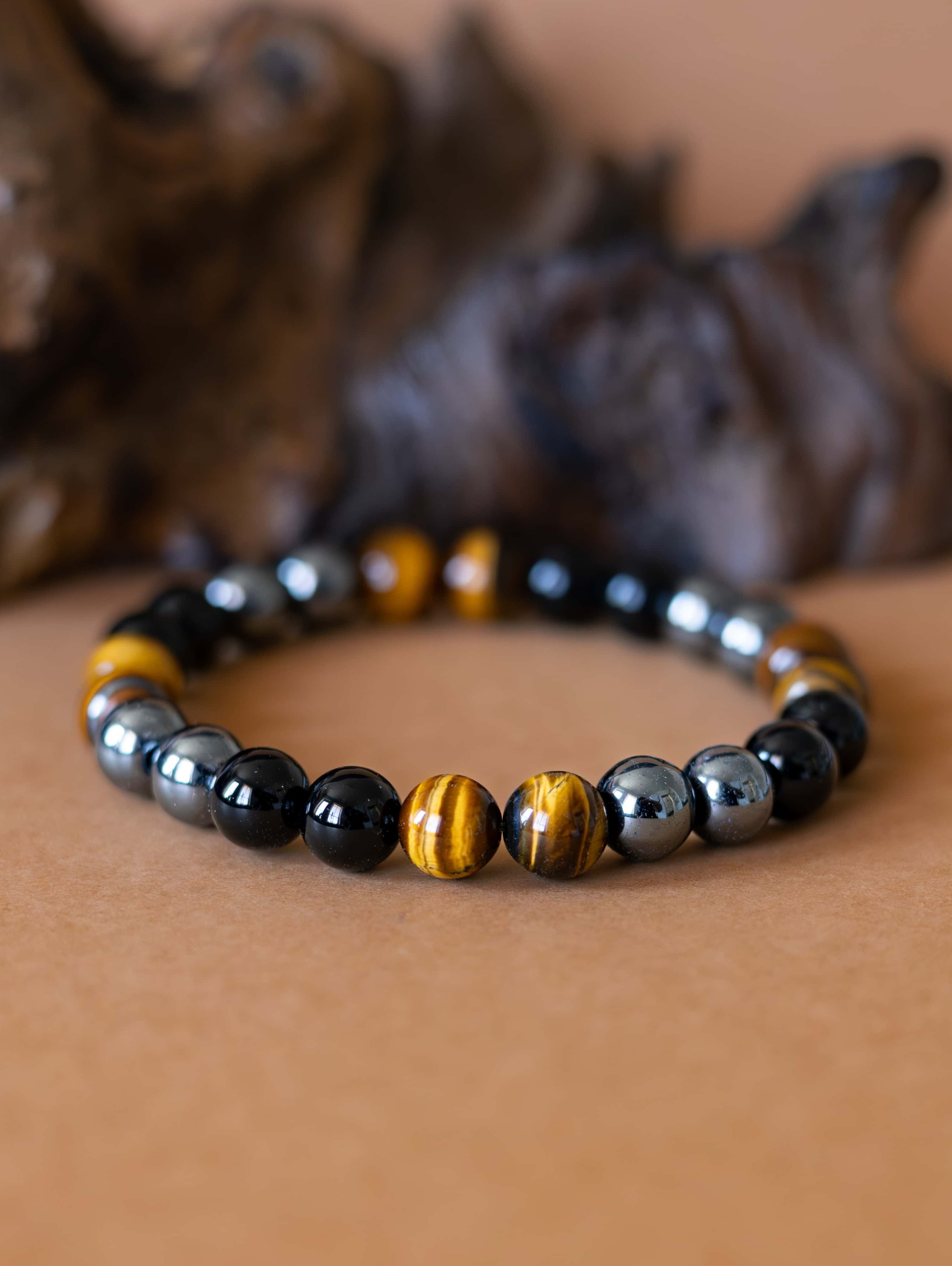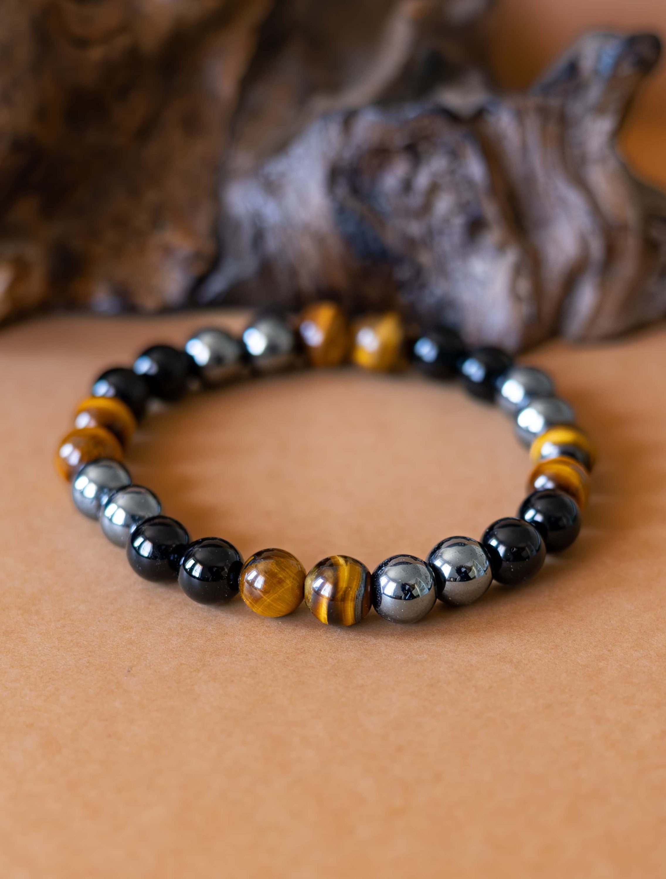 Náramek Sigma je navržen jako tichý symbol pevnosti, odhodlání a vnitřní rovnováhy. Spojení tří silných kamenů – černého onyxu, tygřího oka a hematitu – vytváří šperk, který podporuje soustředění, odvahu a stabilitu v každodenních výzvách.