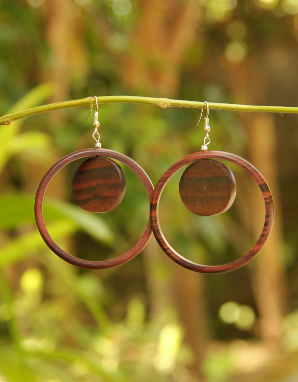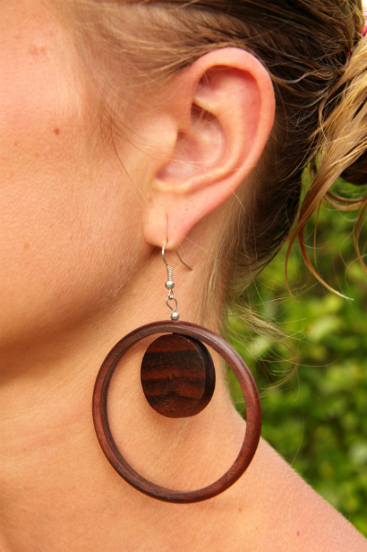Originální náušnice z lehkoučkého tropického dřeva, kruhy.