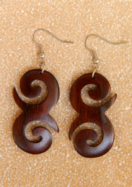 Originální náušnice z lehkoučkého tropického dřeva v tmavěhnědém odstínu.