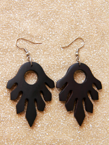 Originální náušnice z lehkoučkého tropického dřeva v tmavěhnědém odstínu.