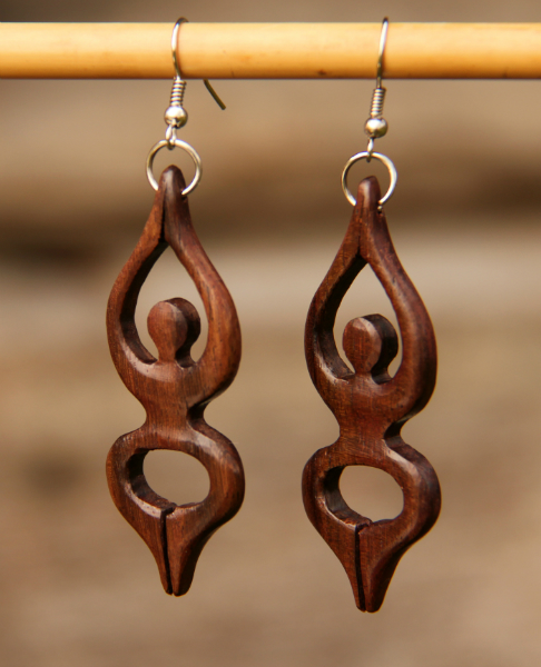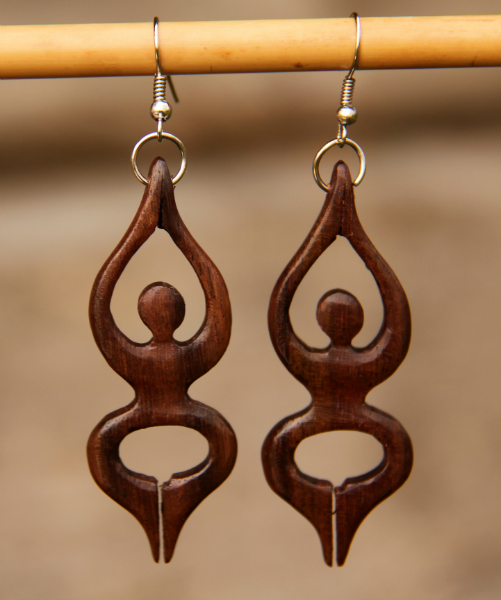 Náušnice "Bohyně" jsou vyrobeny z kaštanového odstínu tropického dřeva (indická růže). Tento ručně vyrobený přírodní šperk bude slušet každé ženě, se kterou zarezonuje.