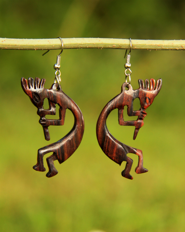 Náušnice z lehkého tropického dřeva s originálním designem v přírodním tmavěhnědém odstínu. Vhodné pro klasickou dírku v uchu.