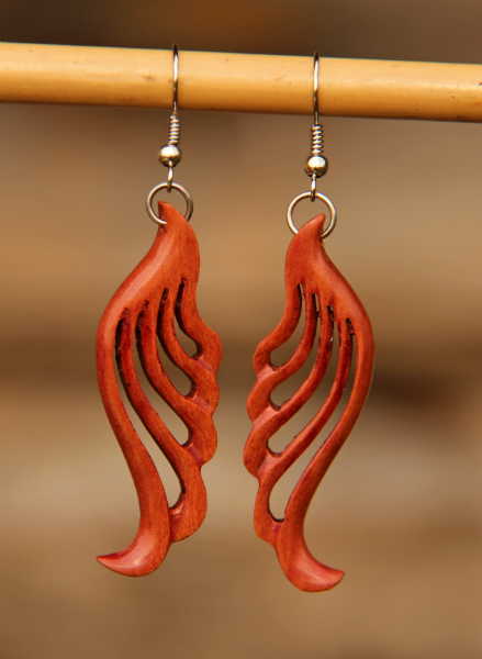 Náušnice "Křídla" andělsky lehounká, vyrobena ze světle skořicového odstínu tropického dřeva (indická růže).