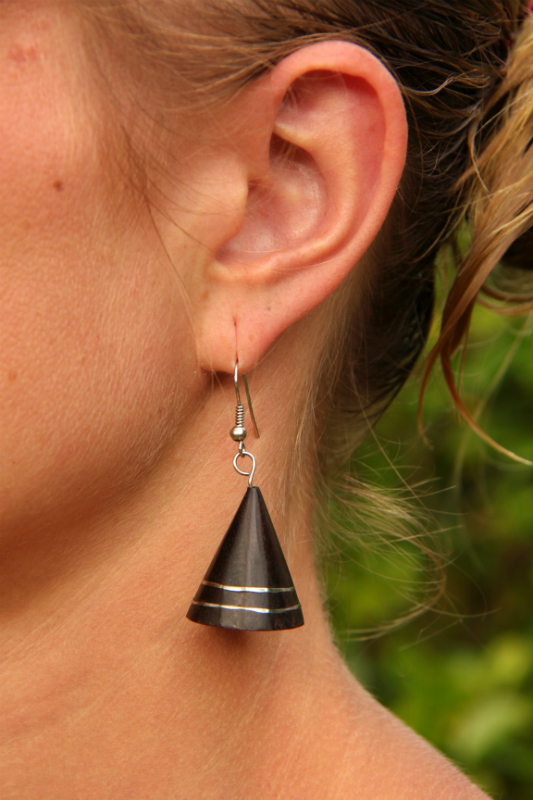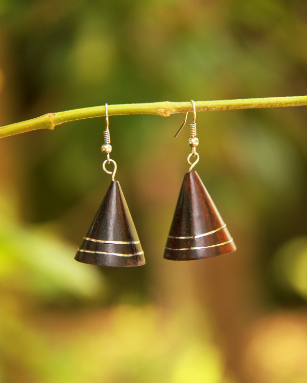 Originální náušnice z lehkoučkého tropického dřeva s kovovou ozdobou.