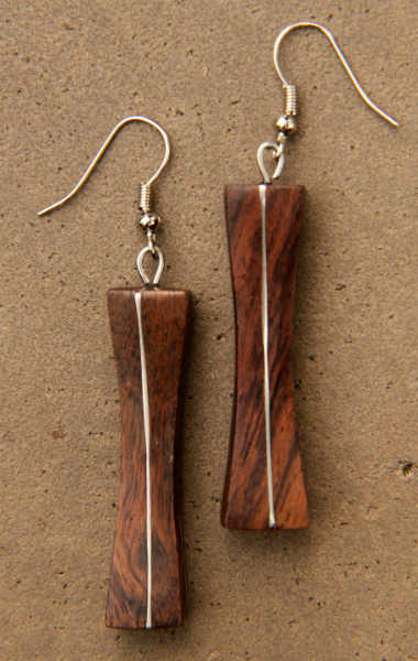 Originální náušnice z lehkoučkého tropického dřeva s kovovou ozdobou.