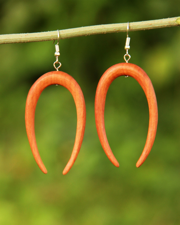 Náušnice z lehkého tropického dřeva (Indická růže) s originálním designem v přírodním světle hnědém odstínu. Vhodné pro klasickou dírku v uchu.