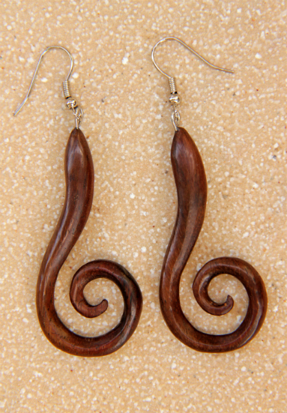 Náušnice z lehkého tropického dřeva s originálním designem v přírodním tmavěhnědém odstínu. Vhodné pro klasickou dírku v uchu.