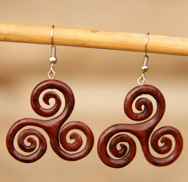 Dřevěné náušnice "Tři spirály"
