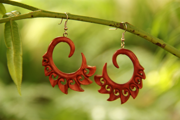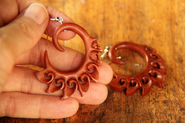 Dokonale ručně zpracované náušnice z lehkého tropického dřeva s bižuterním háčkem.