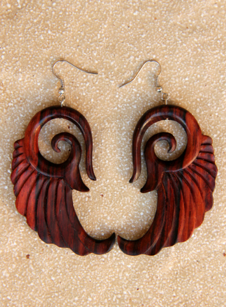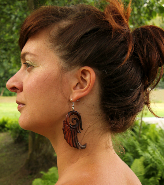 Dokonale ručně zpracované náušnice z lehkého tropického dřeva s bižuterním háčkem. Jemnost, lehkost a krása tropického dřeva lahodí oku i duši.