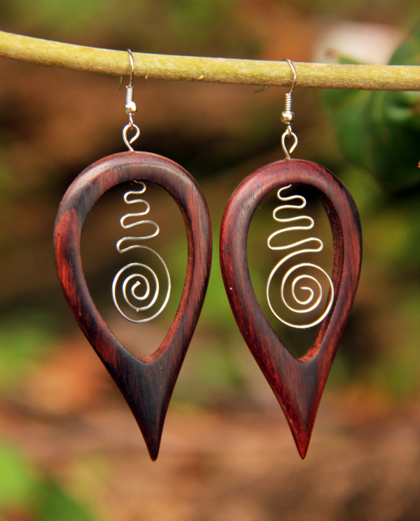 Dokonale ručně zpracované náušnice z lehkého tropického dřeva s bižuterním háčkem.