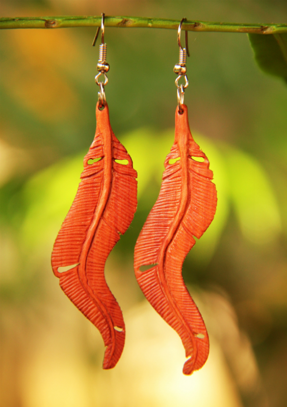 Originální dřevěné peříčkové náušnice