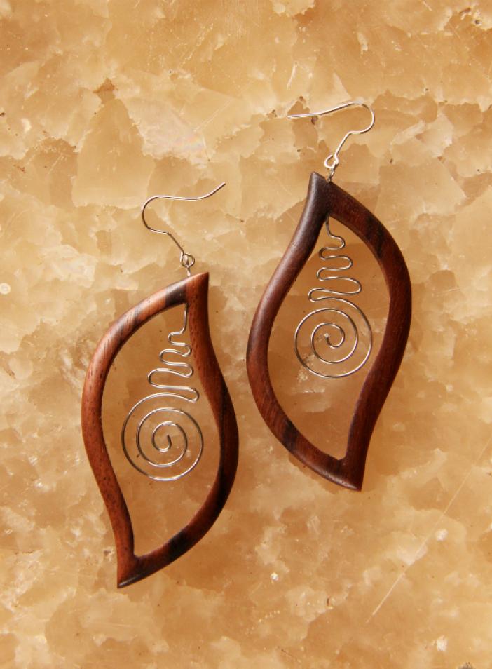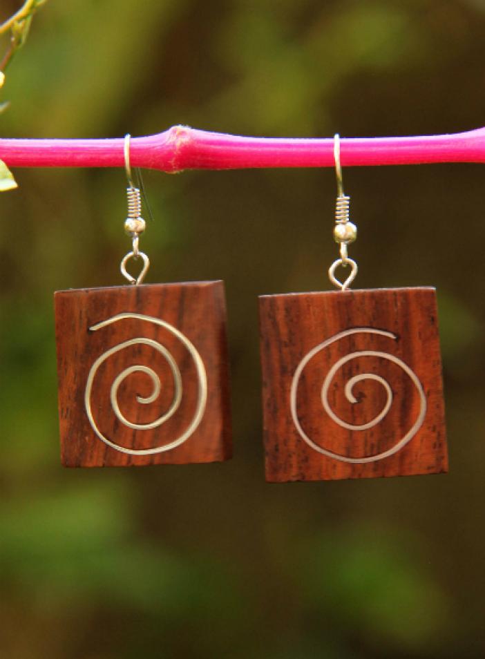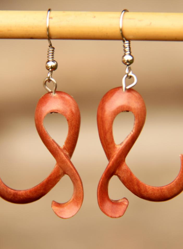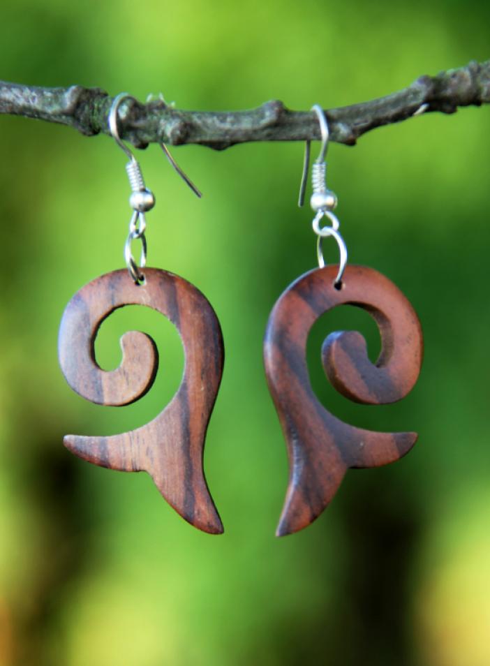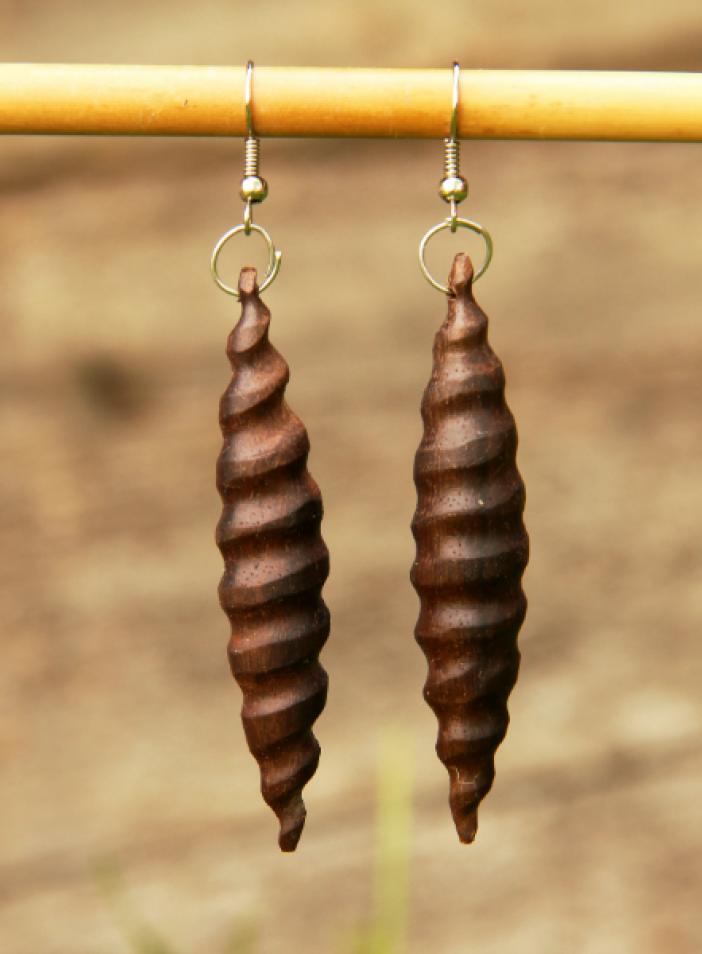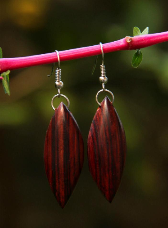 Dřevěné náušnice z tropického dřeva jsou neskutečně lehoučké. Vyzkoušejte sami! Nákupem podporujete provoz rodinných řemeslných dílen.