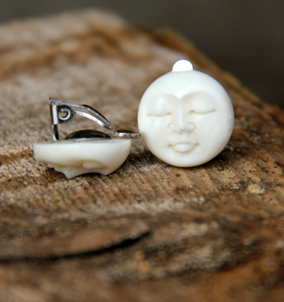 Nemáte dírku v uchu a chcete nosit náušnice? Noste klipsy ! Tyto krásné náušnice s tváří Luny jsou ručně vyřezány z kosti a věnovány ženám. Přírodní šperk bude slušet každé ženě či dívce, která je s Lunou sladěná.