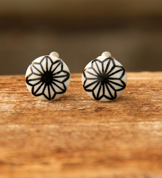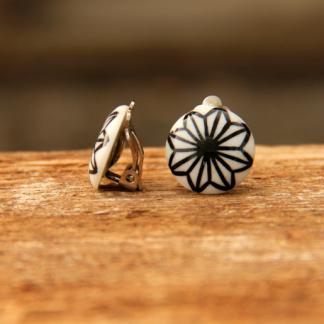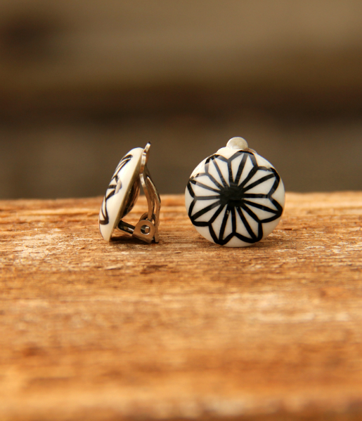Nemáte dírku v uchu a chcete nosit náušnice? Noste klipsy ! Tyto krásné malované náušnice jsou ručně vyrobeny z kosti. Přírodní šperk bude slušet každé ženě či dívce.