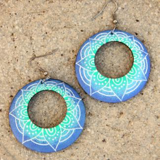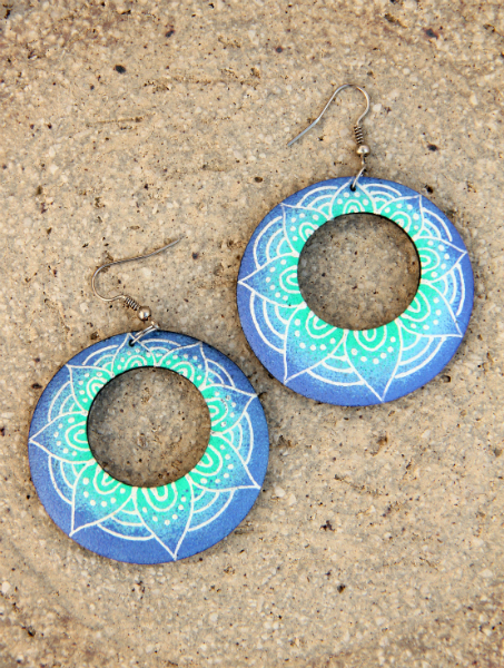 Originální malované náušnice z lehkého tropického dřeva, ručně malované na černém podkladu.