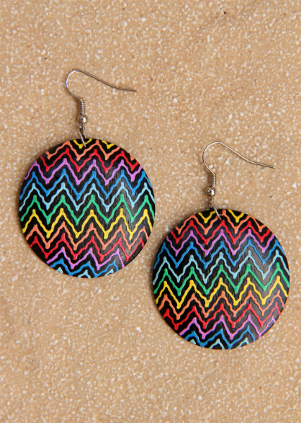 Originální náušnice z lehkého tropického dřeva, ručně malované na černém podkladu.