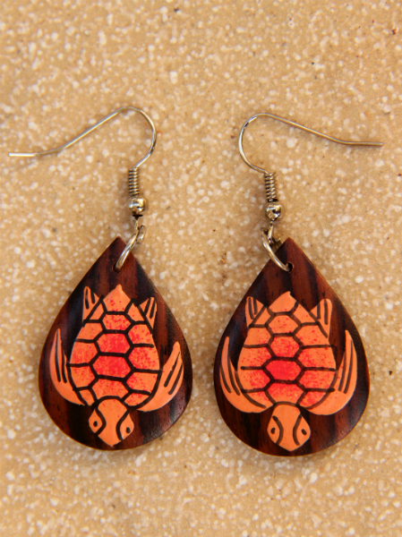 Originální náušnice z lehkého tropického dřeva, ručně malované na přírodně hnědém podkladu.