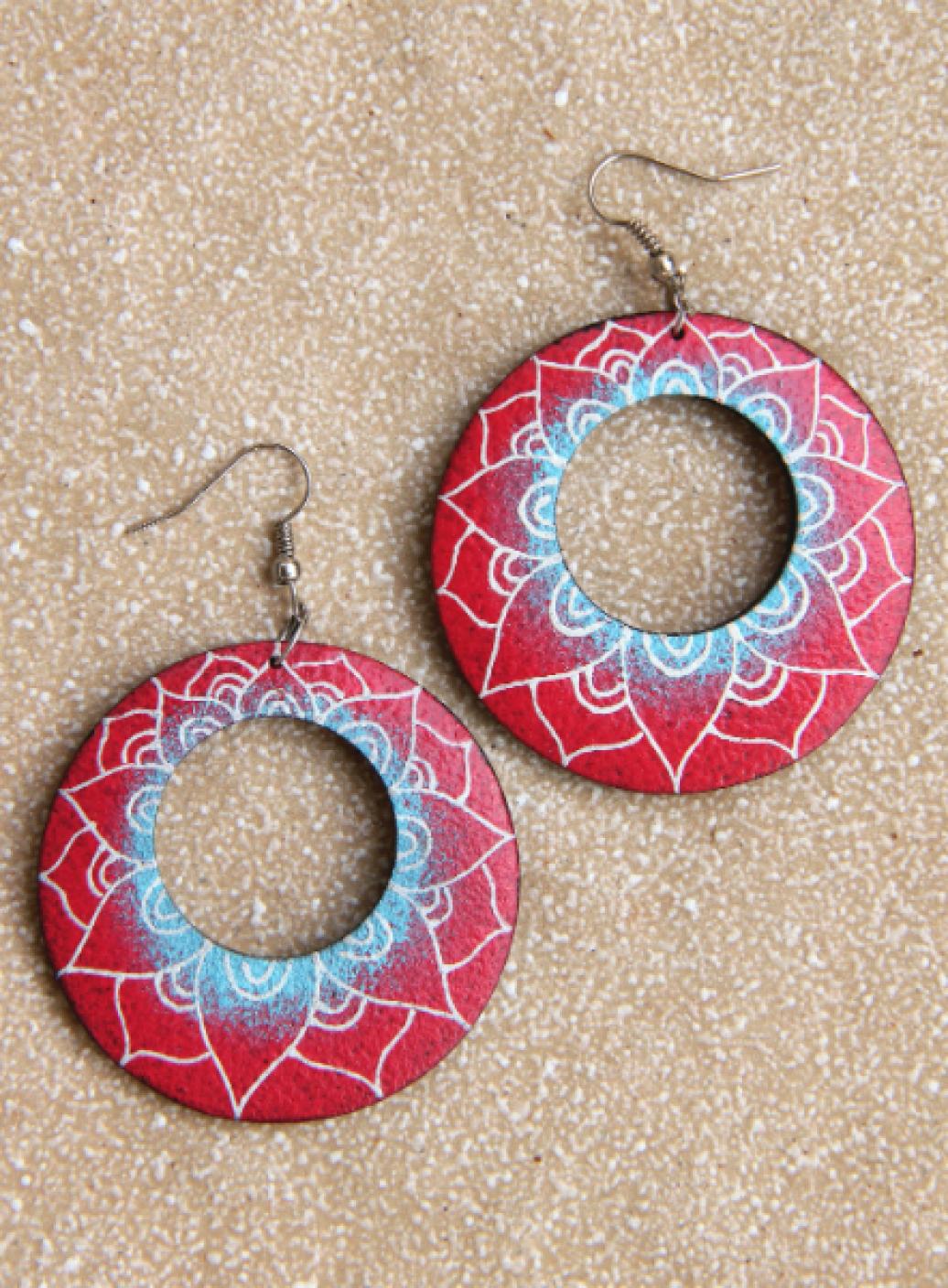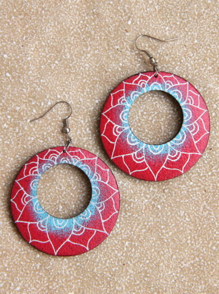 Originální náušnice z lehkého tropického dřeva, ručně malované na černém podkladu.
