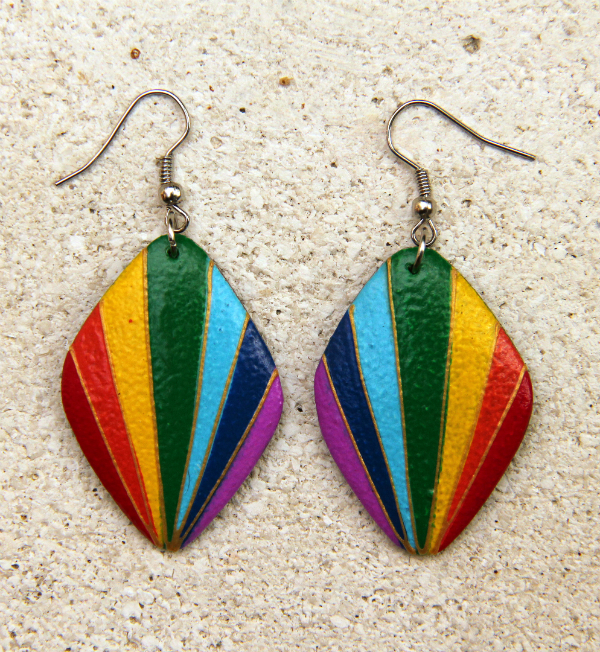 Originální náušnice z lehkého tropického dřeva, ručně malované.