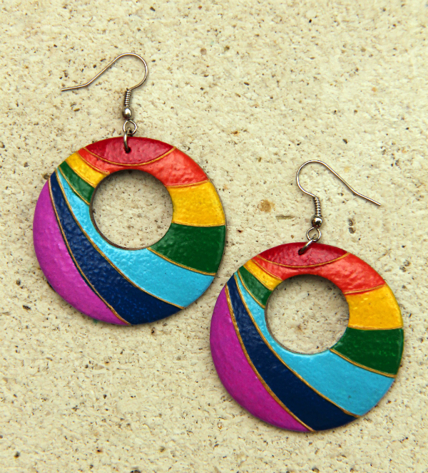 Originální náušnice z lehkého tropického dřeva, ručně malované.