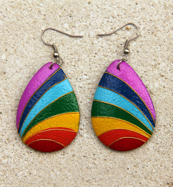 Originální náušnice z lehkého tropického dřeva, ručně malované.