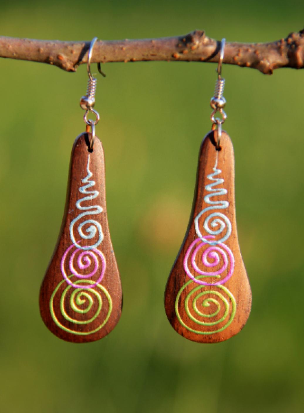 Dřevěné náušnice tři spirálky, malované