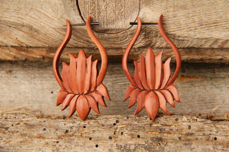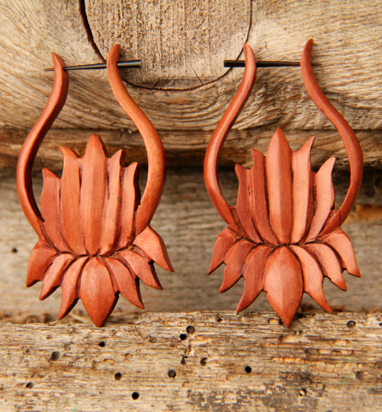 Unikátní dřevěné náušnice "Květ lotosu" z tropického dřeva (indická růže). Šperk k jedinečné, výrazné a svobodné osobnosti.