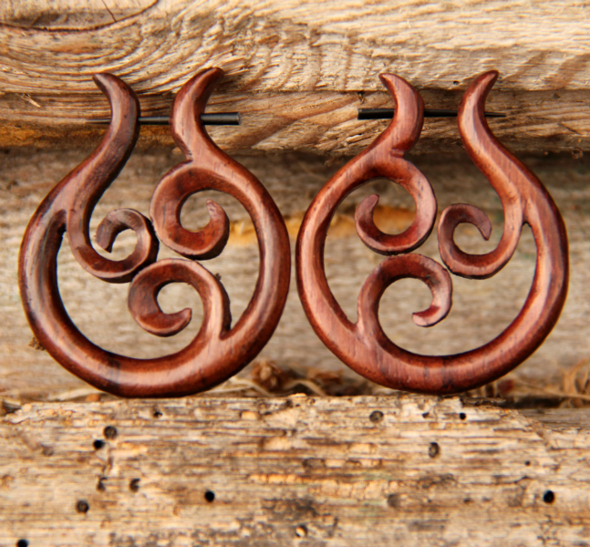 Originální design náušnic s tyčkou v zářivě kaštanovém odstínu tropického dřeva (Palisandr indický). Tento ručně vyrobený přírodní šperk bude slušet výrazné a sebevědomé osobnosti, se kterou zarezonuje.