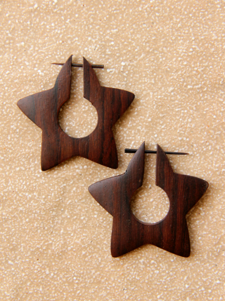 Dřevěné náušnice s originálním designem a zapínáním na tyčku z pružné a hypoalergenní rohoviny. Vhodné pro klasickou dírku v uchu.