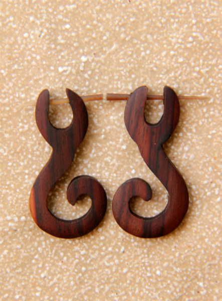 Dřevěné náušnice s originálním designem a zapínáním na tyčku z pružné a hypoalergenní rohoviny. Vhodné pro klasickou dírku v uchu.