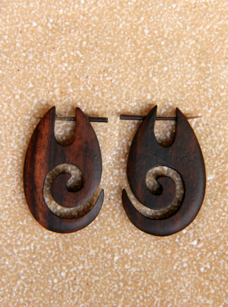 Dřevěné náušnice s originálním designem a zapínáním na tyčku z pružné a hypoalergenní rohoviny. Vhodné pro klasickou dírku v uchu.