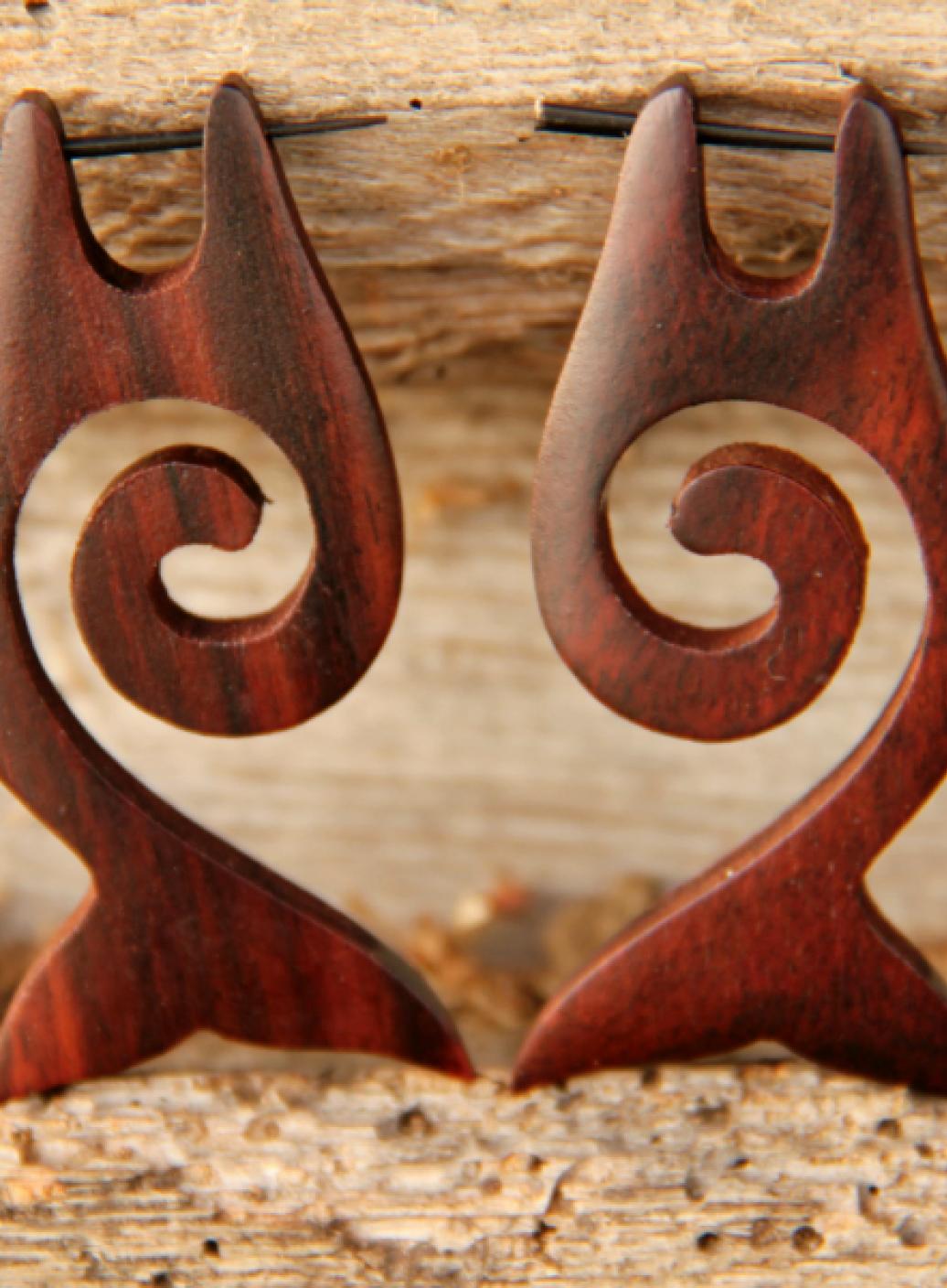 Náušnice "Whale tail" jsou vyrobeny z tropického dřeva lehkého jako pírko. Tento ručně vyrobený přírodní šperk bude slušet každé ženě či dívce, se kterou zarezonuje. Náušnice jsou vhodné pro klasickou dírku v uchu.