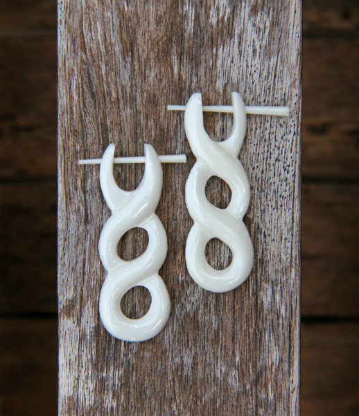 Kostěné náušnice s originálním designem a zapínáním na tyčku z kosti. Vhodné pro klasickou dírku v uchu.