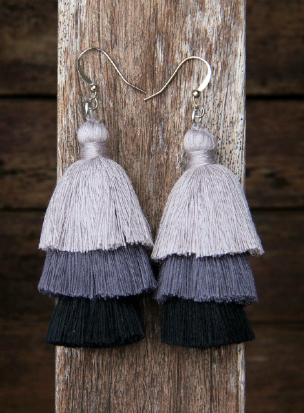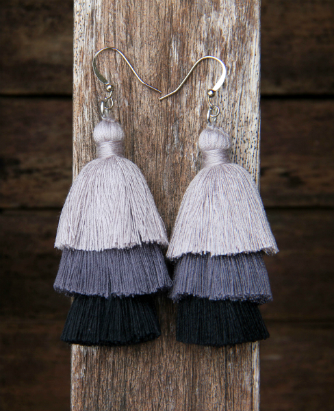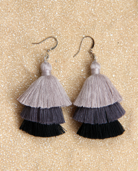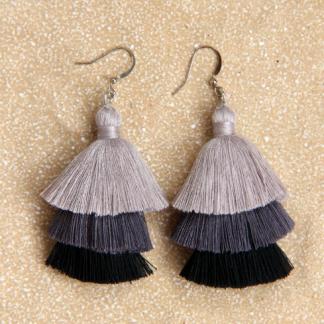 Střapcové náušnice, trojkombinace černá/ tmavě šedá/ světle šedá
