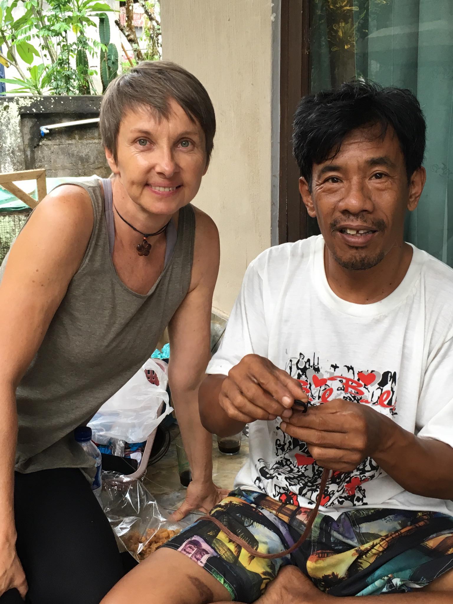 Tento šperk vyrobil pan Asta ve své rodinné dílně v Indonésii. Pan Asta zaměstnává lidi ze své malé vesnice u sopky Batur. Nákupem tohoto výrobku podporujete provoz dílny pana Asty.