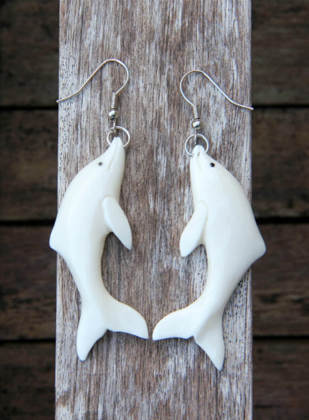 Kostěné náušnice se symbolickým designem. Zapínání na bižuterní háček. Délka náušnice i s háčkem: 7 cm, délka náušnice 5,5 cm.