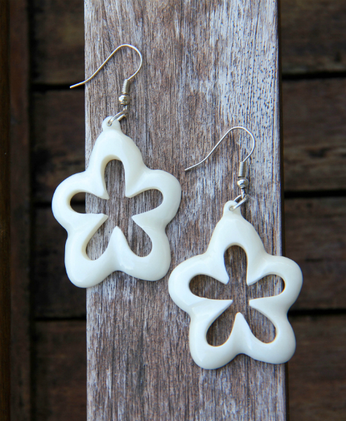 Kostěné náušnice se symbolickým designem. Zapínání na bižuterní háček. Délka náušnice i s háčkem: 5,5 cm, délka náušnice 3 cm.