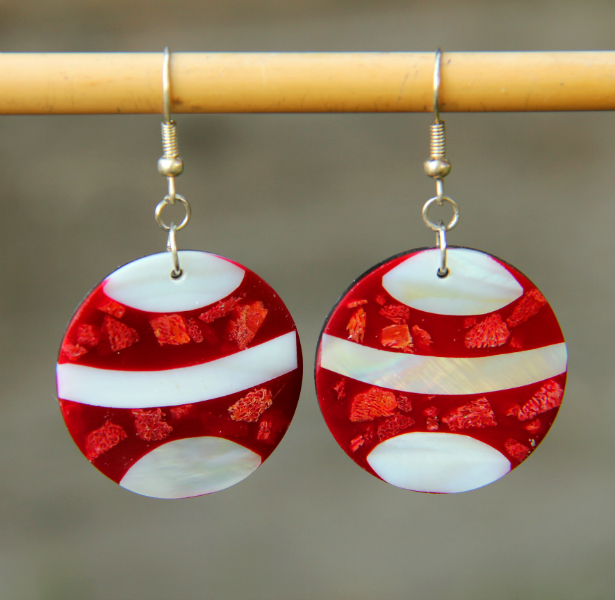Červenobílé náušnice z korálu a bílé mušloviny. Šperk pro každou ženu a pro každou příležitost.