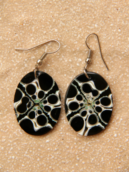 Náušnice z mušloviny zalité do černé pryskyřice. Ideální letní šperk pro každou ženu.