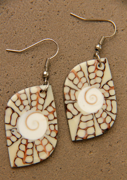 Náušnice z mušloviny a mušlové spirály shiva eye zalité do bílé pryskyřice. Ideální letní šperk pro každou ženu.