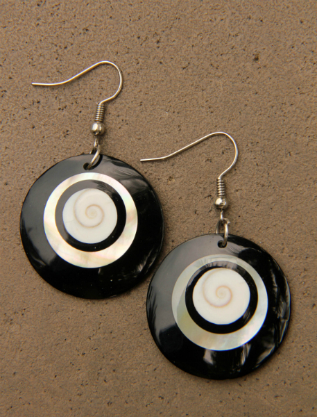 Náušnice z mušle shiva eye a perleti zalité do černé pryskyřice. Ideální letní šperk pro každou ženu.