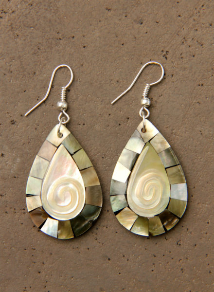 Náušnice z perleťové mozaiky a bílé perleti zalité do pryskyřice. Ideální letní šperk pro každou ženu.